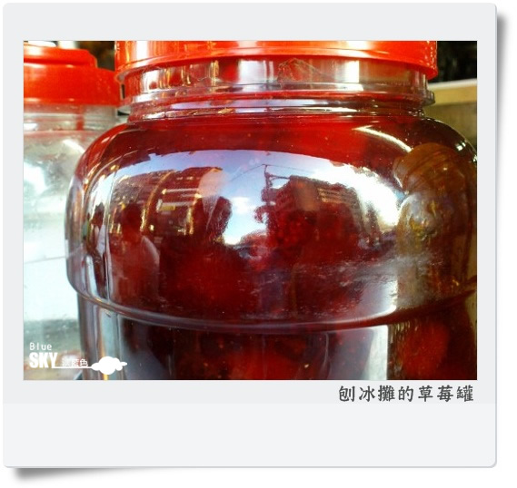 吃個冰 解解熱 從冰攤的草莓罐 也可以看到今天的好天氣