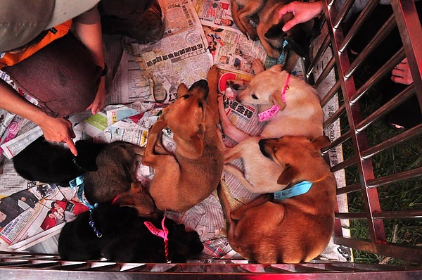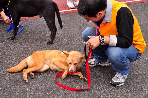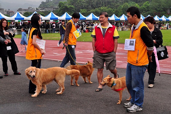 待在棚內的多半是較小的狗 大隻的狗狗 都由各義工們牽在附近活動 和大家更親密的接觸