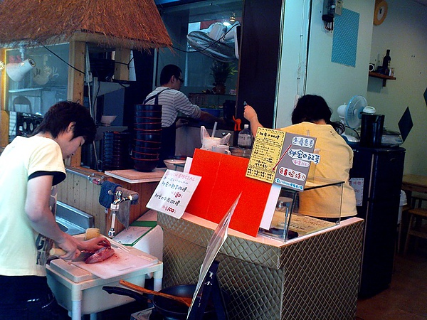 店門口很簡單 而且也很小 所有的準備 都在前面這個小廚房搞定